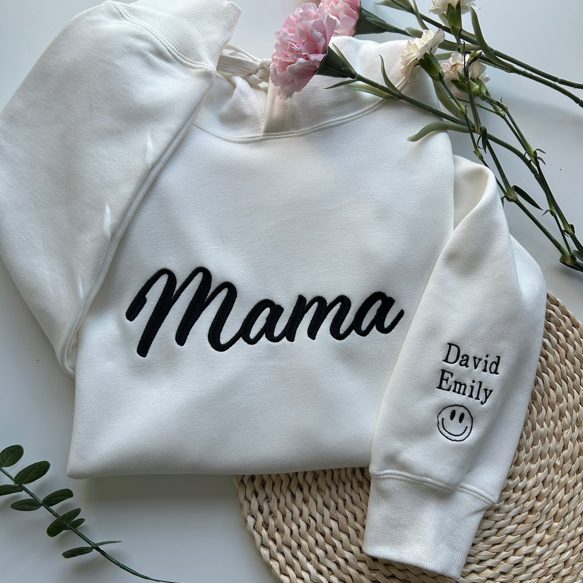 Custom Mama Embroidered Sweatshirt With Kids Names On Sleeve🔥💐