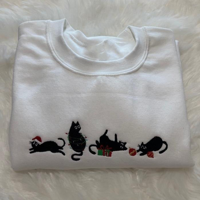 Home 🎁 Hot Sale Black Christmas Cats Style Embroidered Shirt
