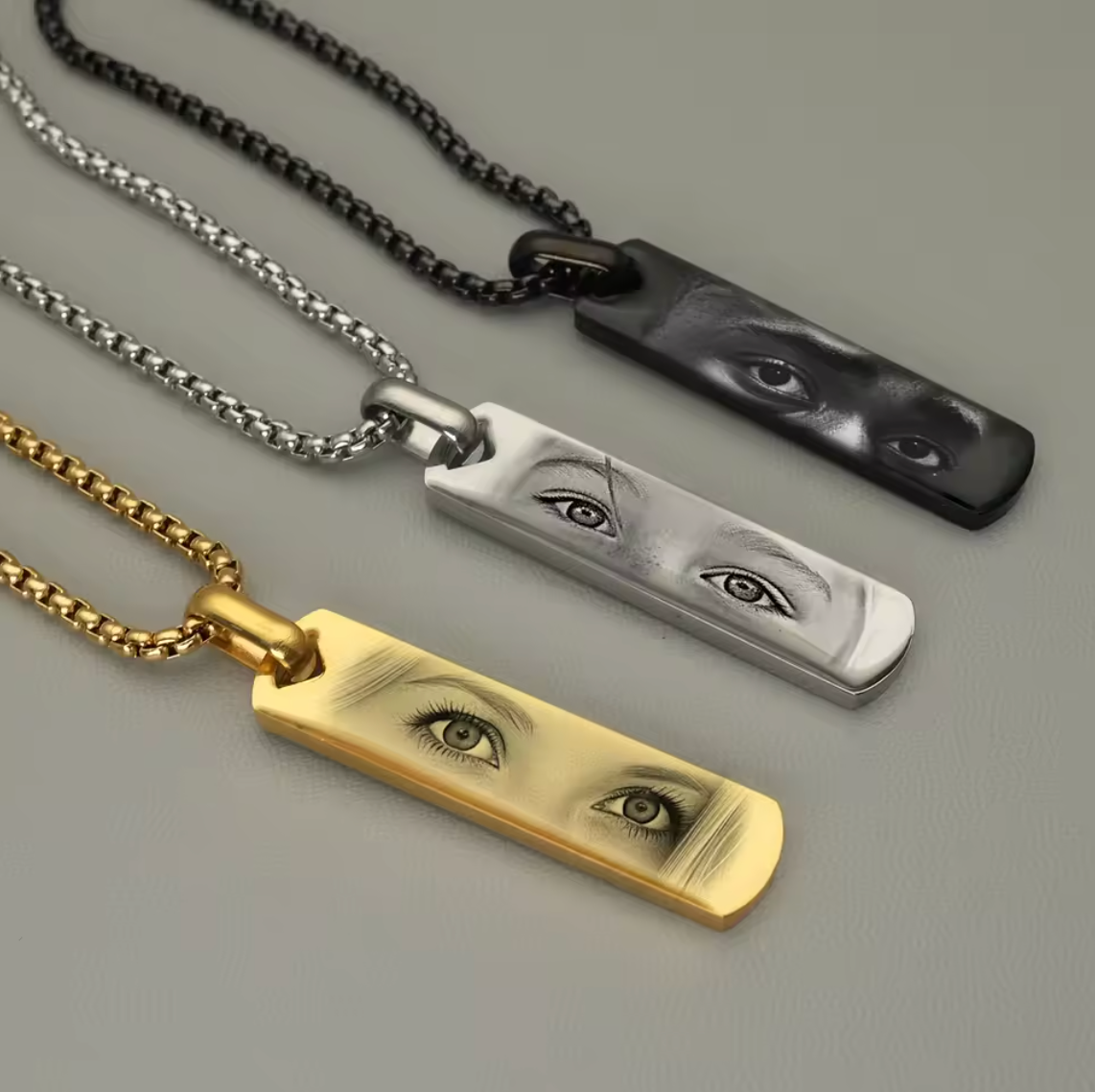 Capture the unspoken connection with our custom eyes photo necklace — a perfect way to wear your love every day.