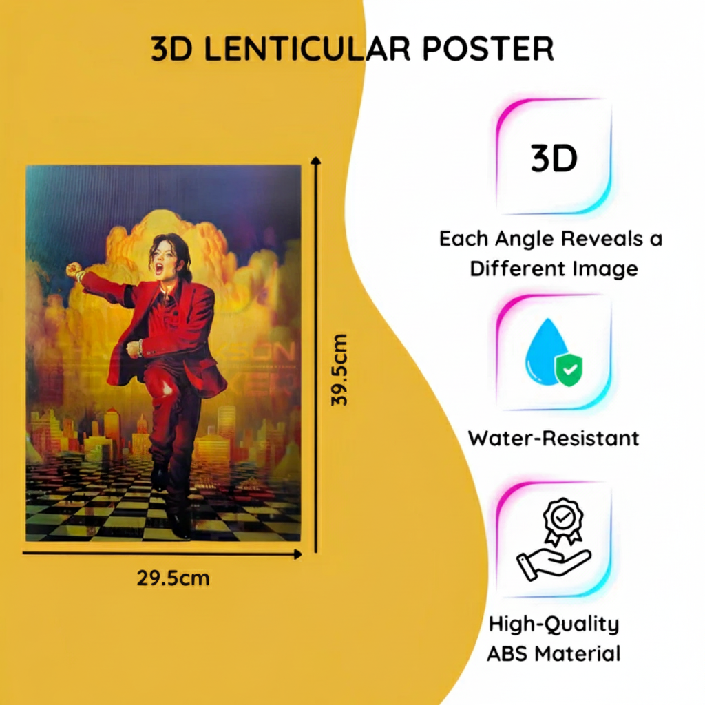 Experience dynamic imagery that shifts with every angle, capturing the essence of a legend. Made from durable, waterproof ABS material, this poster is designed for long-lasting quality and style.